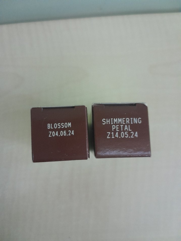 Dudak parlatıcısı, Blossom ve Shimmering Petal renk seçenekleriyle. Avon ürünlerinin üzerindeki tarih üretim tarihidir. Sıfır ürünler.