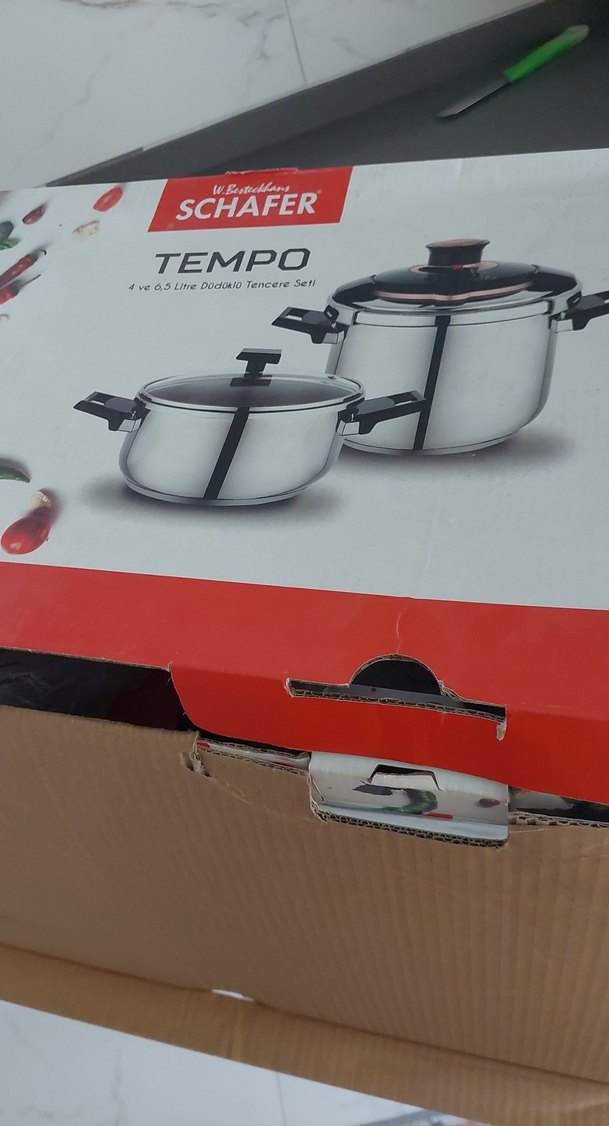 Schäfer Tempo 4 parçadan oluşan gri tencere seti, dayanıklı ve parlak paslanmaz çelikten üretilmiştir. küçük tenceresi ve kapağı hiç kullanilmamistir. sifir ayarında