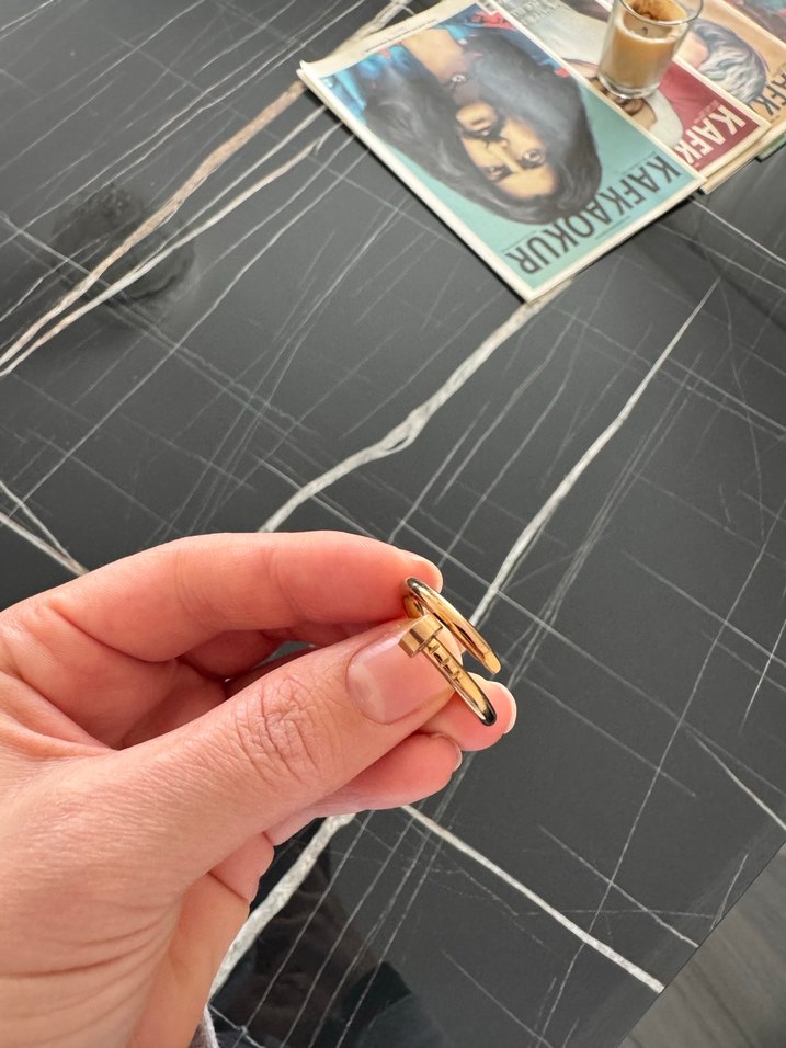 Parlak altın renginde, düğme detaylı kadın yüzüğü. Minimalist ve sade tasarımıyla günlük kullanıma uygundur. ✨