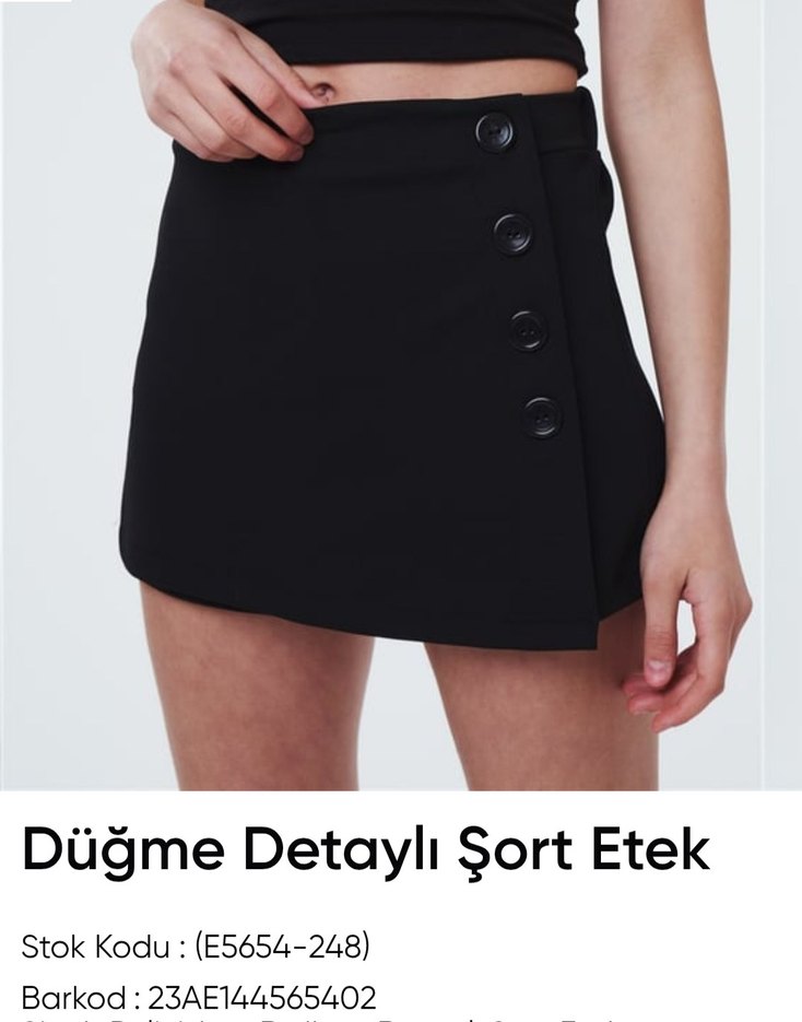 Düğme detaylı, siyah renkli mini etek, vücuda oturan kesime ve sentetik kumaşa sahiptir. Günlük rahat sokak stiline uygundur. 2-3 kere giydim kusursuz