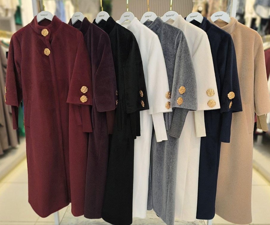 Düğmeli, nakışlı düğme detaylı uzun klasik kadın kaban. Bol kesim, uzun kollu ve klasik yaka tasarımıyla konforlu ve şık bir görünüm sunar.