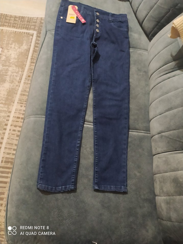 Düğmeli, normal boy midi uzunlukta lacivert kadın denim pantolon, rahat kesimi ve sade tasarımıyla günlük kullanıma uygundur.