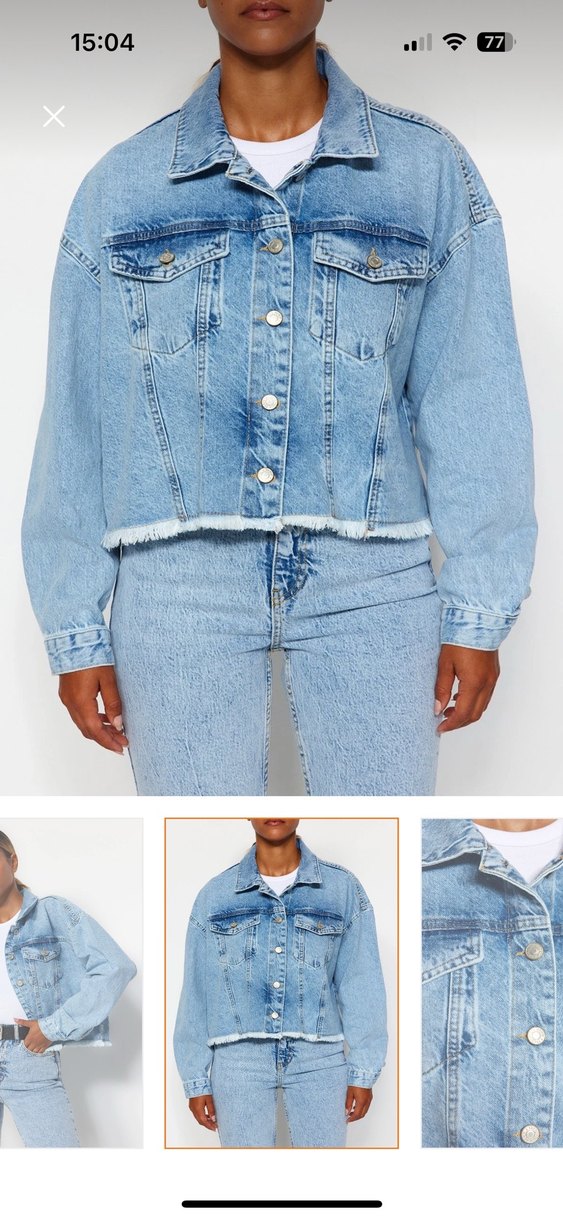Açık mavi renkte, düğmeli, uzun kollu ve geniş kesim kadın denim ceket. Normal uzunlukta, notched yaka detayıyla günlük rahat kullanıma uygundur.