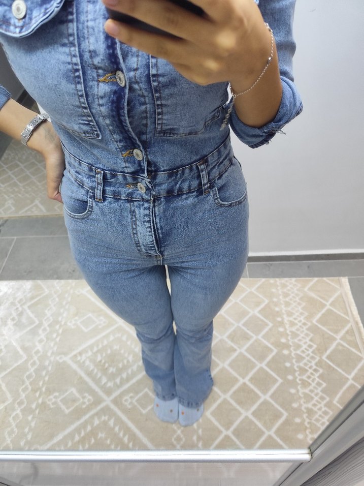 Düğmeli, açık mavi renkte, normal boyda, dar kesim kadın kot pantolon. Günlük kullanıma uygun rahat ve şık bir model.xs bedendir 45 49 kiloya kadar olur