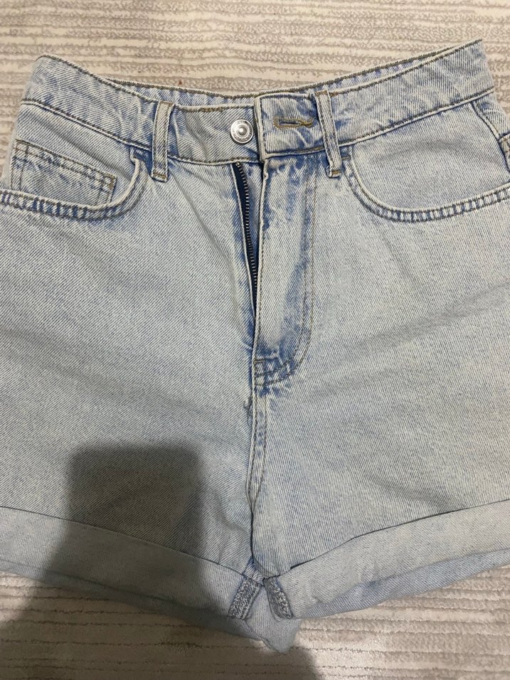 Düğmeli açık mavi Kadın Mini Denim Şort