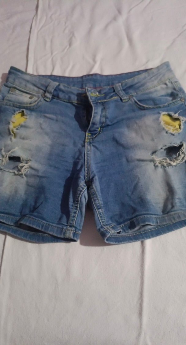 Açık mavi renkli, düğmeli ve bol kesim mini denim şort. Yırtık detaylarıyla günlük sokak tarzına uygun rahat bir parça.