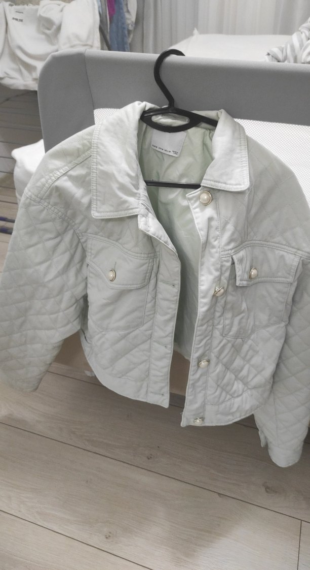 Düğmeli, keten kumaştan yapılmış açık yeşil, bol kesim kadın ceket. Uzun kollu, notched lapel yaka ve midi boyda, günlük rahat sokak stili için uygun. Kolunun arka kısmında ufak bir leke var,onun dışında hiçbir kusuru yok