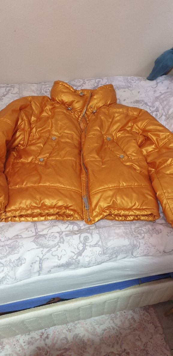 Düğmeli ve parlak altın renkli, kadınlar için fitted kesim kışlık mont. Uzun kollu, notched lapel yaka ve midi boyda, yumuşak ve sıcak kumaşla günlük kullanıma uygun. ✨