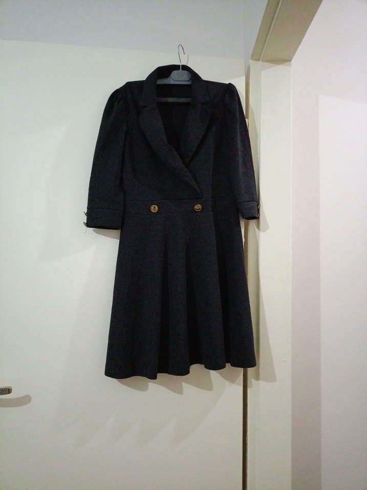 Düğmeli, yakalı, antrasit, çok şık, ofis için uygun elbise. Görsellerde ölçüler mevcut.