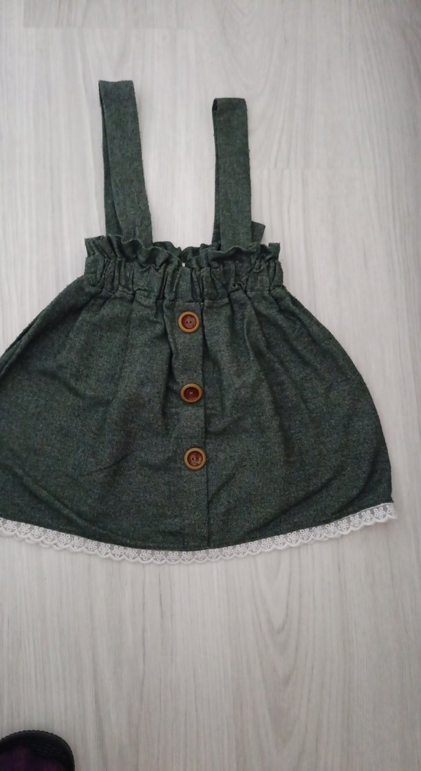 Düğmeli, Askılı Gri Kız Elbisesi