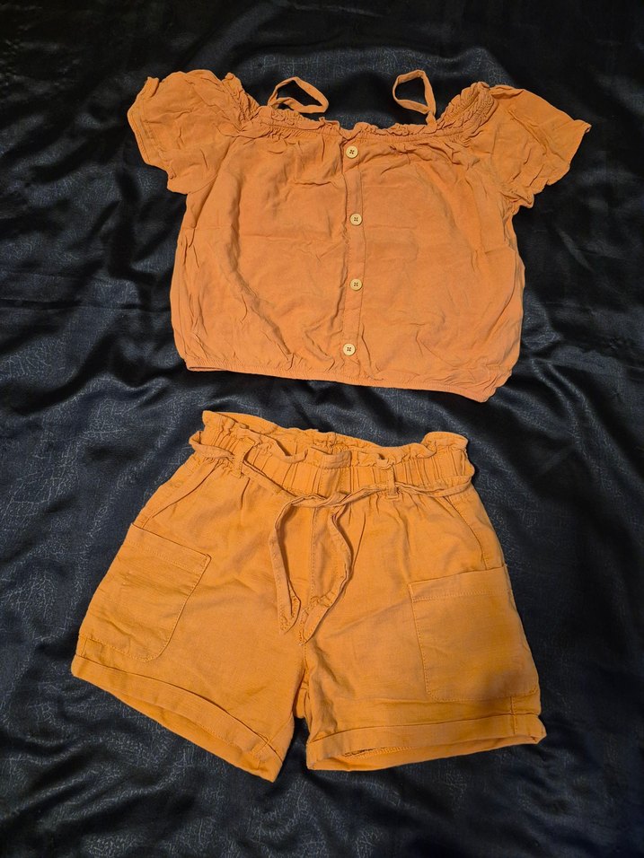 9-10 yaş Askılı Kız Çocuk Takım rengi turuncu. Kızıma küçük olduğu için satıyorum.