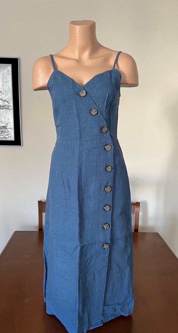 Düğmeli önü ve ince askılarıyla keten kumaştan yapılmış lacivert uzun midi elbise. vintage bohem tarzında, günlük kullanım için uygundur. Robin marka. %100 keten kumaş. 36 beden. Ama 34 bedene de uyar. Çok tatlı bir mavi renk. Askılı düğmeli. etek ucuna doğru hafif bir yırtmacı var. Bir kere giyildi. Yeniden farksız. Çok kaliteli bir parça. Askılı giymiyorsanız içine beyaz tişört ile çok güzel bir uyum oluyor. #keten #ketenelbise #elbise #mavi #mavielbise #askılı #askılıelbise #midielbise #uzun elbise #robin #lcwaikiki #defacto #koton #mavi #colins #littlebig #ltb #ambar #penti #dagi #suwen #mudo #adilışık #adl #lewis #ipekyol #twist #network #pierrecardin #uspoloaasn #polo #vakko #tommyhilfiger #zara #mango #bershka #stradivarius #pullandbear #hm #h&m #yargıcı #massimodutti #beymen #nautica #gap #lee #loft #lacoste #occasion #wcollection #adidas #nike #vans #newbalance #puma #reebok