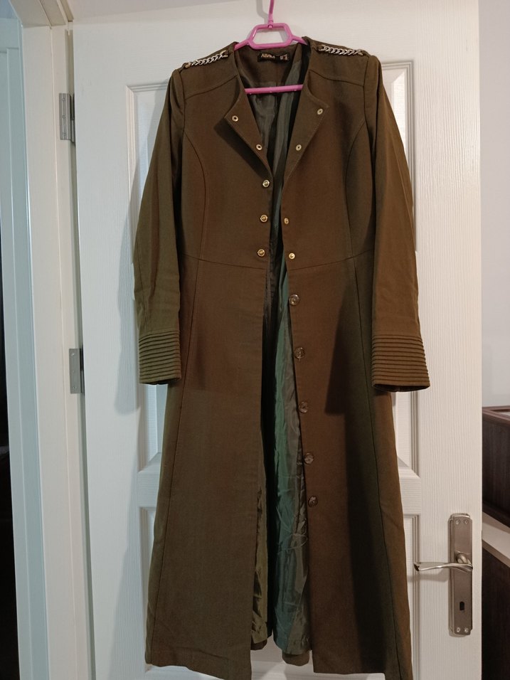 Düğmeli Astarlı Haki yeşili Uzun Kadın Kaşe Kaban
