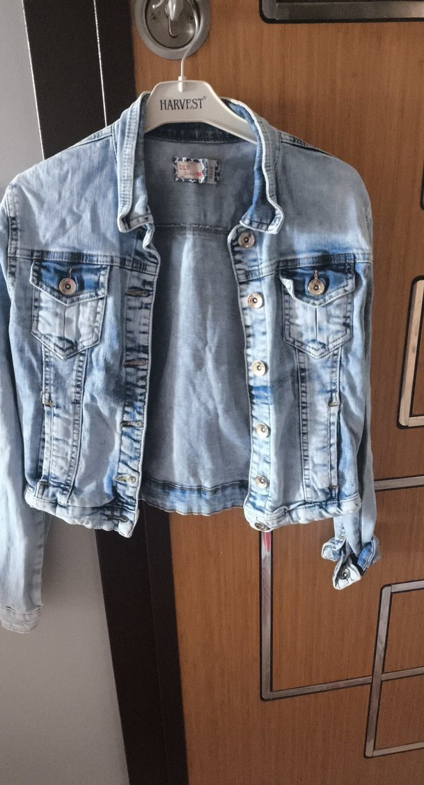 Mavi ve gri tonlarında bağcıklı kolları ve düğmeli kapamasıyla, notched yaka ve midi uzunlukta, fit kesim kadın denim ceketi. HARVEST marka.
