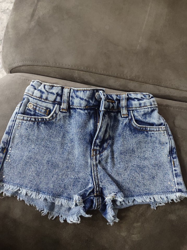 Düğmeli kapamalı, bağlama desenli mavi-gri tonlarda bol kesim kız kot şort, rahat sokak stili için uygundur.
