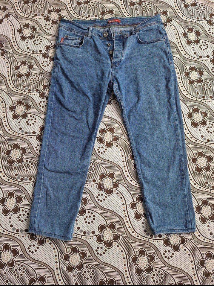 Düğmeli Bağlama Desenli Erkek Kot Pantolon