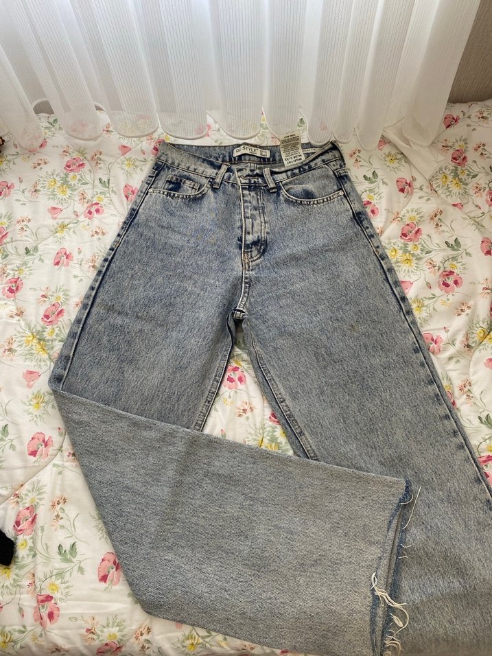 Düğmeli Bağlama Desenli Rahat Kesim Kadın Jean