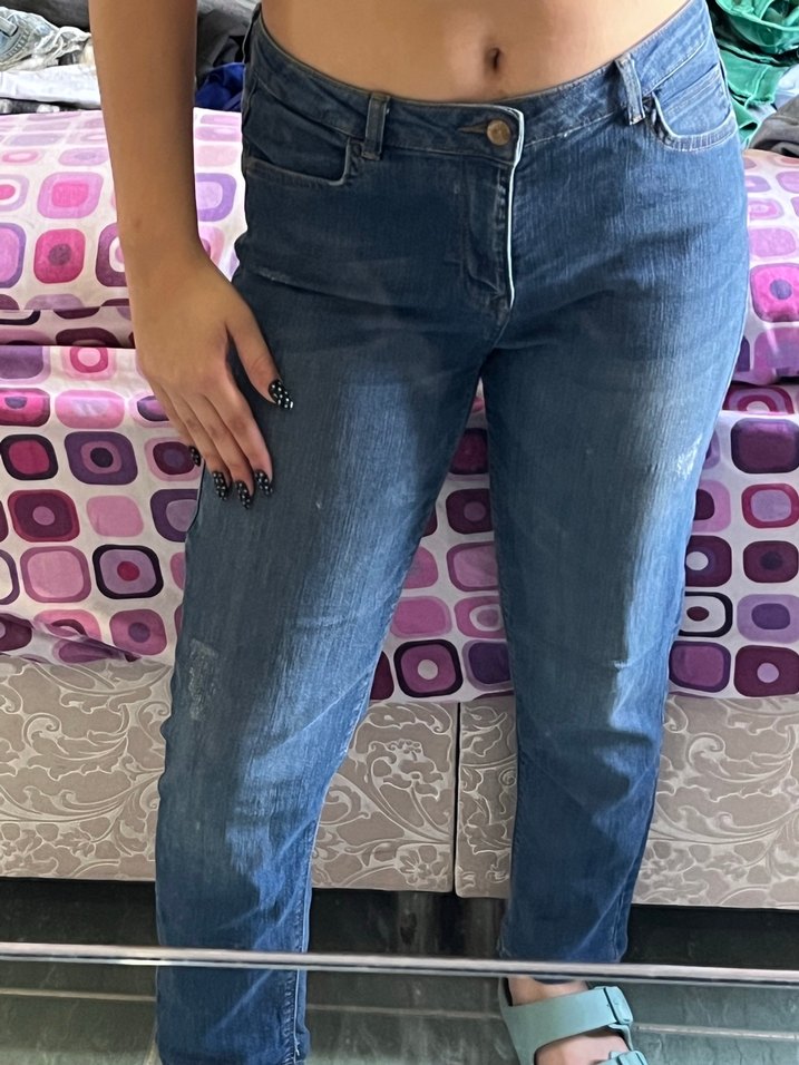 Düğmeli Bağlamalı Desenli Mavi Kadın Jean