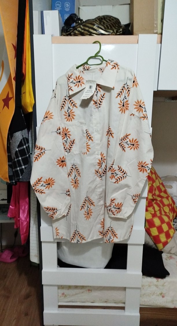 Beyaz, düğmeli ve yakalı bu gömlek, sentetik kumaştan ve bol kesimdir. Baskılı deseniyle günlük sokak tarzına uygundur.