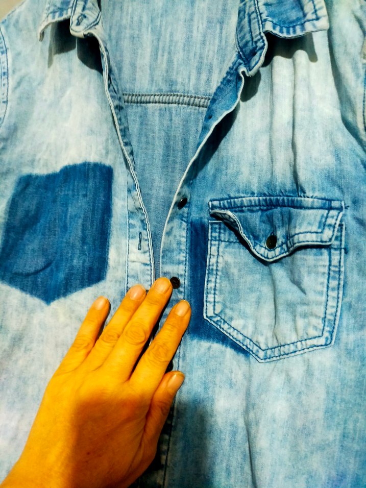 Düğmeli Batik Desenli Mavi Denim Kadın Gömlek