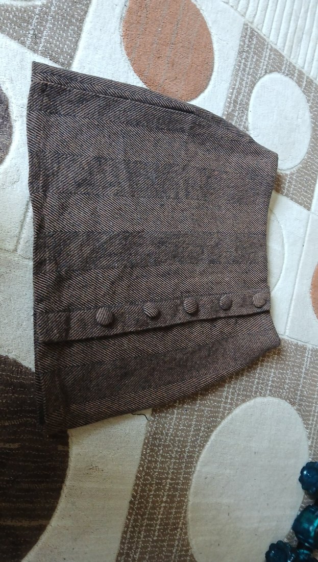 Düğmeli detaylı, kahverengi bayan etek sayılı girmiş hem şık hem güzel hem rahat