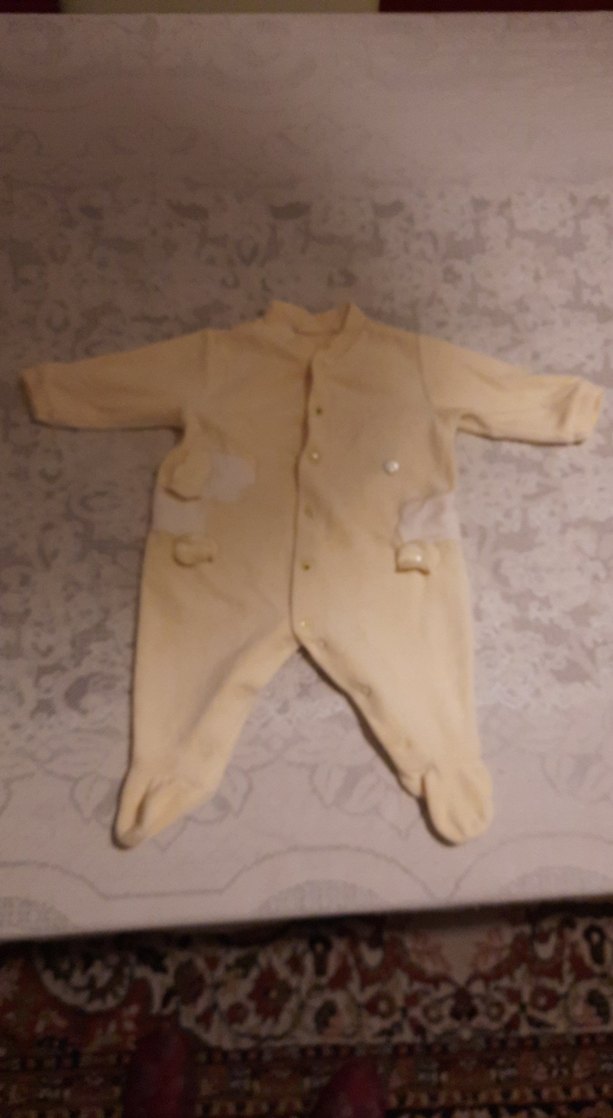 Pastel beyaz renkte, uzun kollu ve düğmeli bebek hastane tulumu. Yumuşak ve sıcak kumaştan üretilmiştir, rahat ve sade bir tasarıma sahiptir.
