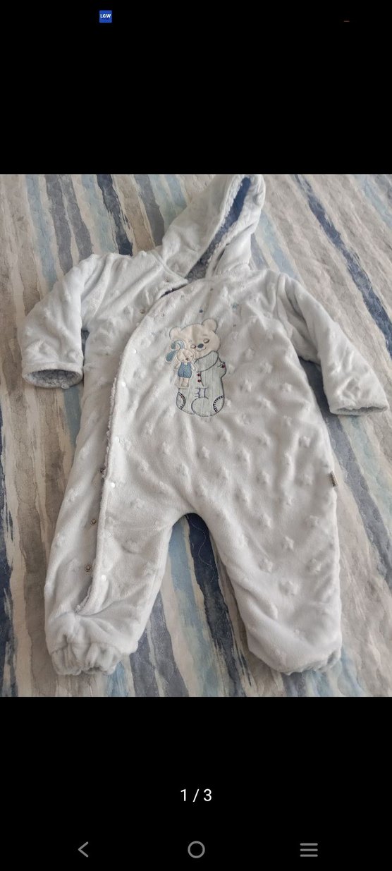 Düğmeli ve kapüşonlu, yumuşak ve sıcak kumaştan yapılmış gri bebek tulumu, işlemeli ayı deseniyle sokak stili için uygundur. sayılı kullanildi