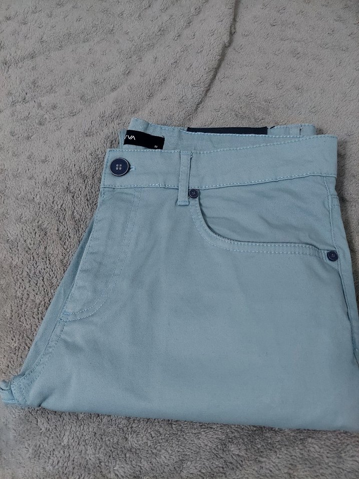 Düğmeli, normal boy bebek mavisi erkek denim pantolon, rahat kesim ve gündelik kullanıma uygun.