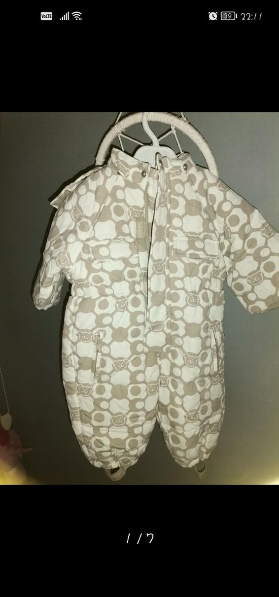Düğmeli, gri-beyaz renkte, yumuşak fleece kumaştan yapılmış bebek tulumu. Sokak stiline uygun, hafif desenli. ❄️Unisex italya'dan alındı