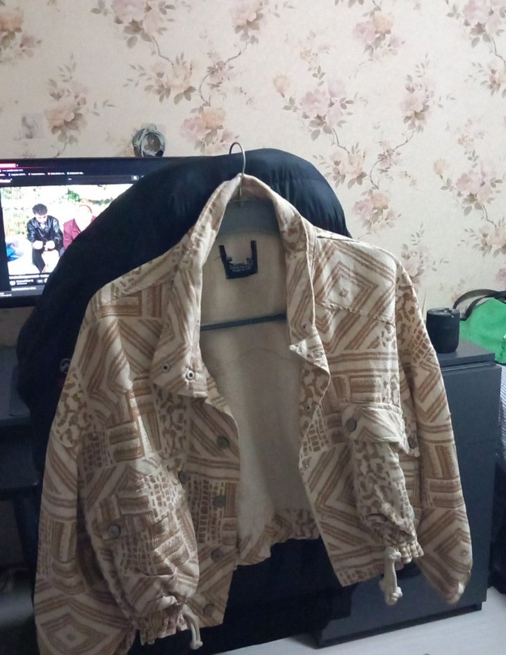 Bej renkli, bol kesim ve uzun kollu kadın ceketi, düğmeli ve açık yaka detaylıdır. Midi boyda, bohem tarzı için uygundur.