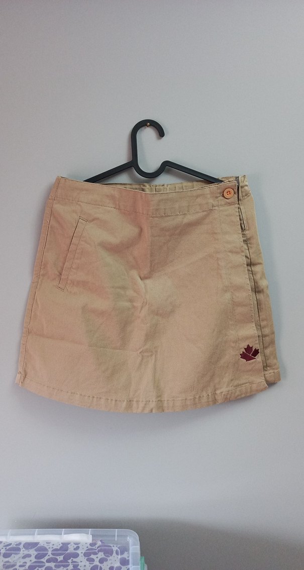 hiç giyilmedi etiketi üstünde 11-12 yaş Düğmeli ve yan cepli, pamuklu bej mini etek. Rahat kesimiyle günlük sokak stiline uyum sağlar.
