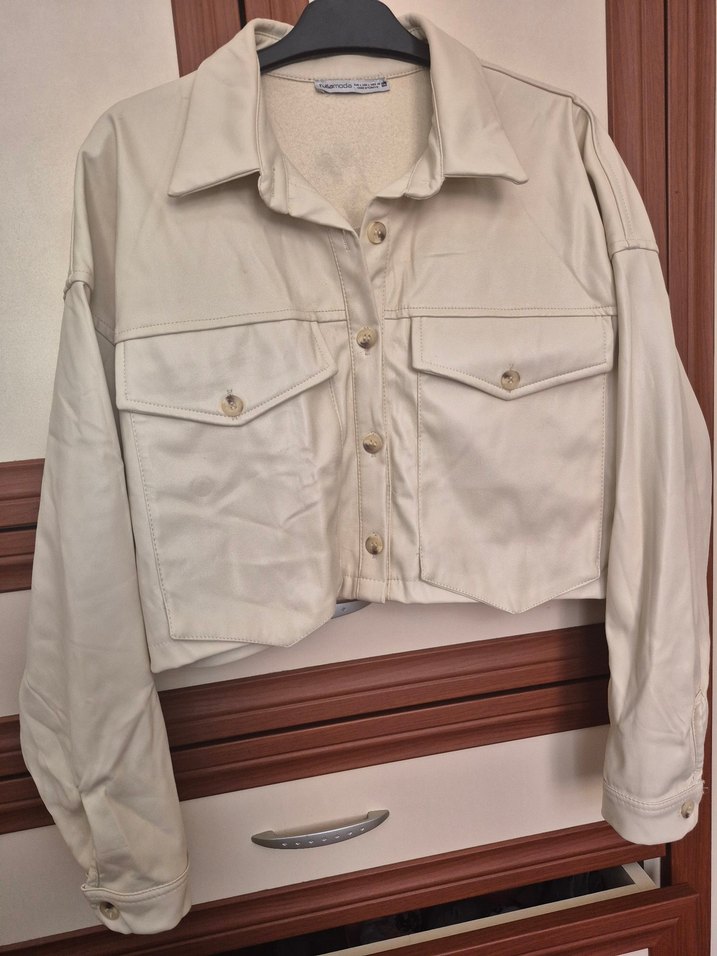 Düğmeli Bej Deri Kadın Ceket