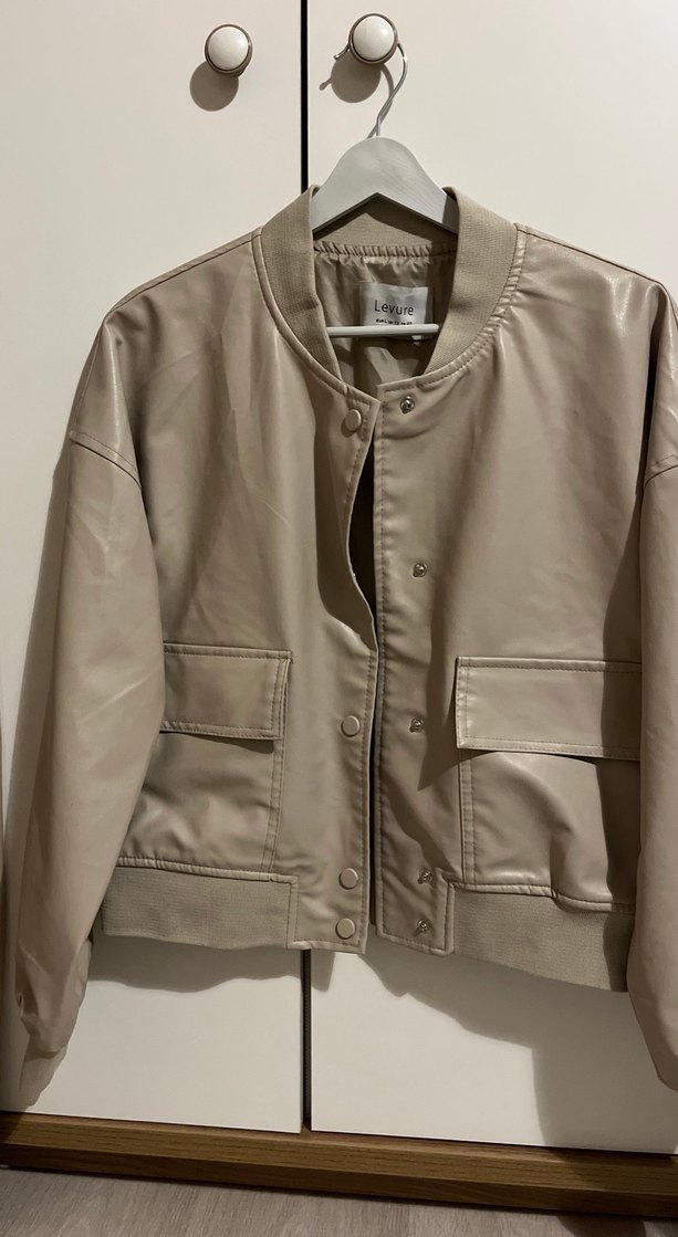 Düğmeli Bej Deri Kadın Ceket
