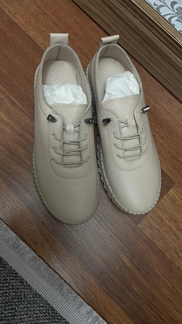 Düğmeli Bej Deri Kadın Günlük Ayakkabı