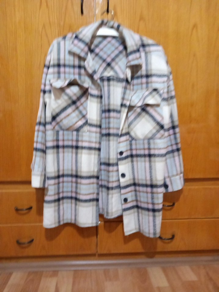 Bej ekose desenli, düğmeli, uzun kollu ve yakalı kadın gömleği. Rahat kesimi ve yumuşak kumaşıyla günlük sokak stiline uygundur.