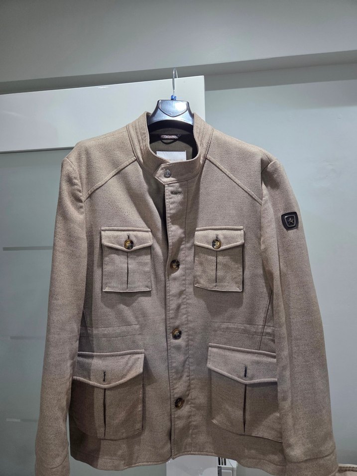Düğmeli, bej renk erkek kaban Uzun kollu, regular fit ve cepli. Günlük sokak stiline uygundur beden 56 beden seçiminde olmadığı için 54 seçtim