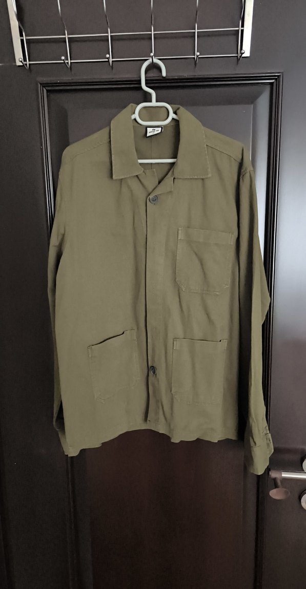 Bej renkte, düğmeli ve keten kumaştan yapılmış erkek ceketi. Normal kesim, uzun kollu ve sade tasarımlı, günlük sokak stiline uygun.