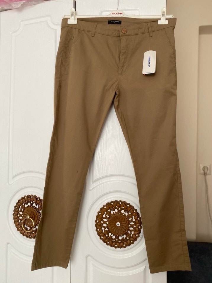 Düğmeli, bej renkli erkek pantolon, regular fit kesime sahiptir. Parlak görünümlü sentetik kumaştan yapılmıştır ve gündelik sokak stili için uygundur. Midi boy ve desensizdir.
