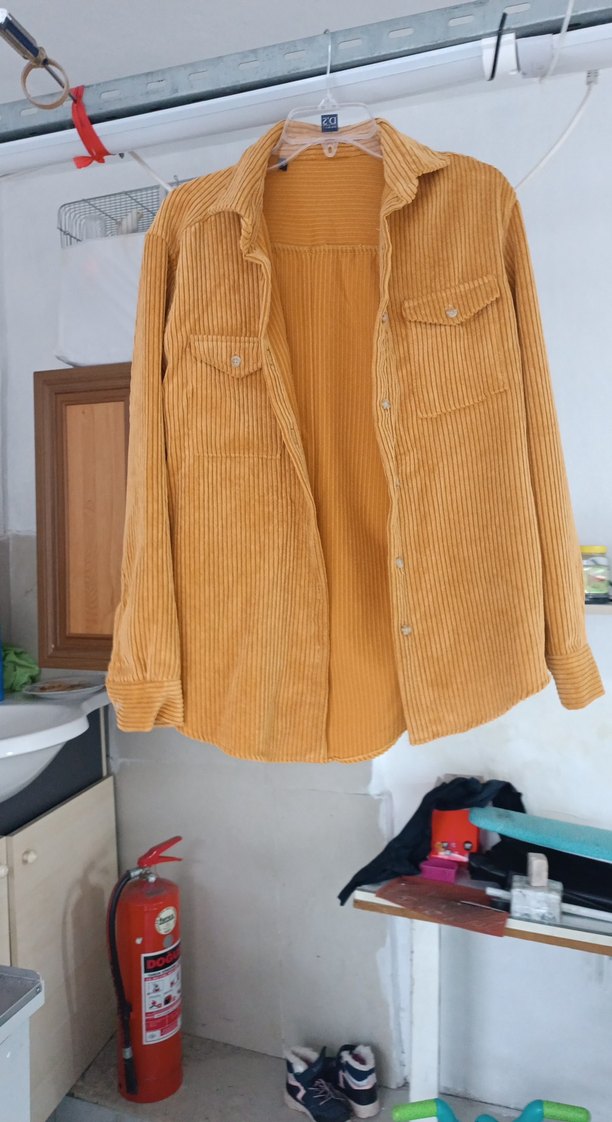 Düğmeli Bej Kadife Gömlek