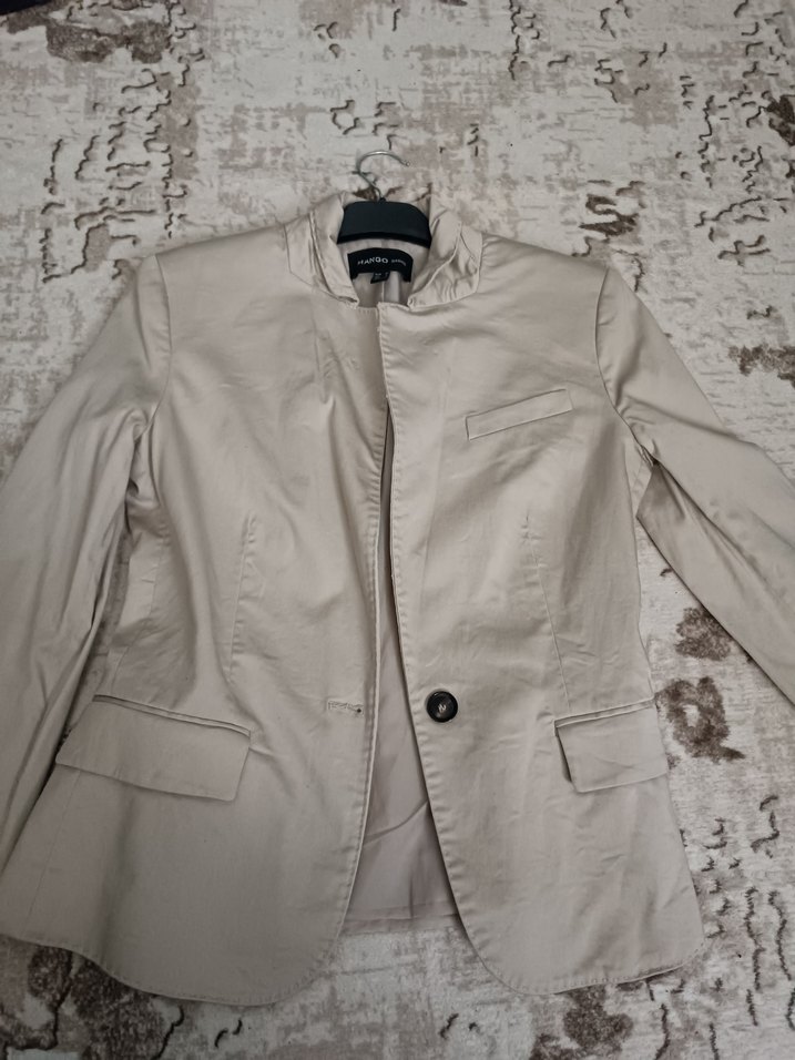 Düğmeli, bej renkli kadın blazer ceket. Keten kumaştan, uzun kollu, normal uzunlukta ve regular fit. Ofis ve günlük kullanıma uygun, desen içermeyen şık bir model. Kalıbı biraz dar 34 bedene daha uygun