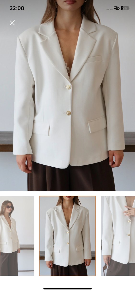 Düğmeli ön, uzun kollu, bej renkte, ipeksi dokulu kadın blazer. Normal kesim ve midi boyda, ofis ortamına uygun klasik şıklıkta.42 ama 38 40 icin uyumlu