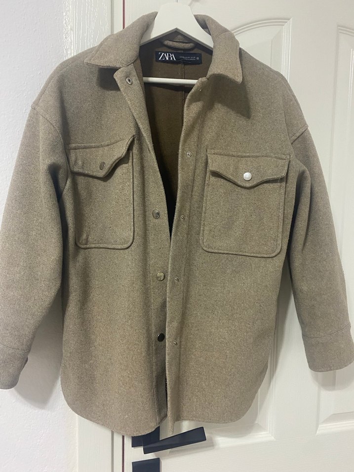 Bu bej yün kaban, kesik yaka ve düğmeli kapamalıdır. Uzun kollu, normal kesim ve önünde iki kapaklı cep bulunur. Desensiz midi boy, sokak stili ve günlük kullanıma uygundur.