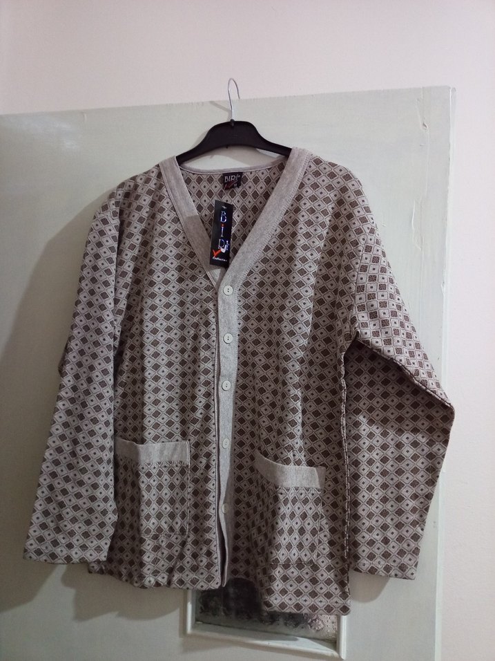 Bej renkte kadın ceketi, uzun kollu ve düğmeli ön kısıma sahiptir. Notlu yaka, bol kesim ve normal midi boyda, iki ön cepli pamuklu kumaştan üretilmiştir. Günlük kullanıma uygundur.