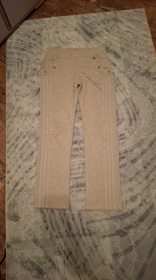 Düğmeli detaylı, midi boyda bej kadın eşofman altı. Yumuşak sentetik kumaştan, rahat günlük kullanım için uygundur.