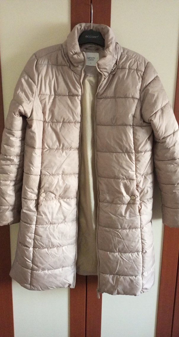 Bej renkli kadın kışlık mont, düğmeli ve uzun kolludur. Dar kesimi, çıtçıtlı önü ve yakasıyla rahat ve sıcak tutar. Günlük kullanıma uygundur. ❄️ şapkası da var hiç bir sorun defo yok L beden DeFacto
