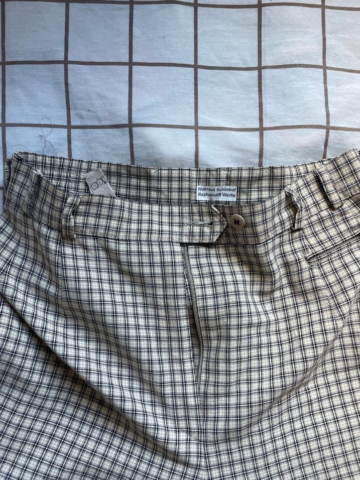 Düğmeli, bej renkli pamuk kumaştan yapılmış, normal kesim ve midi boy kadın pantolon. Paris tarzı normcore stilde, günlük kullanıma uygun 36-38 bedene uygun