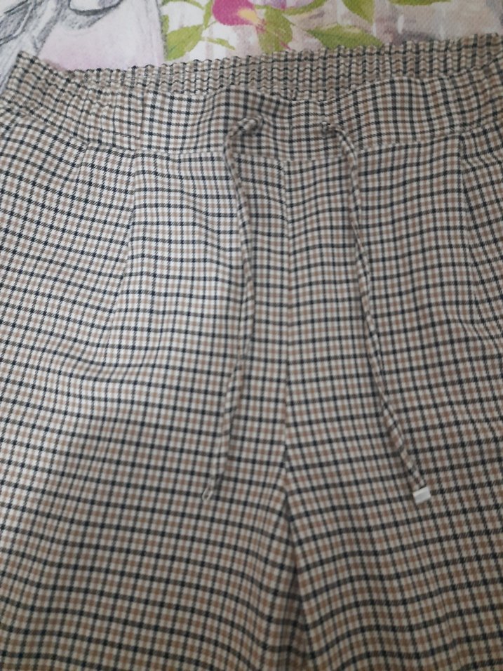 Düğmeli detaylı, bej renkli midi boy kadın kumaş pantolon. Sentetik kumaştan üretilmiş, regular fit ve ekose desensizdir. Günlük sokak stiline uygundur.