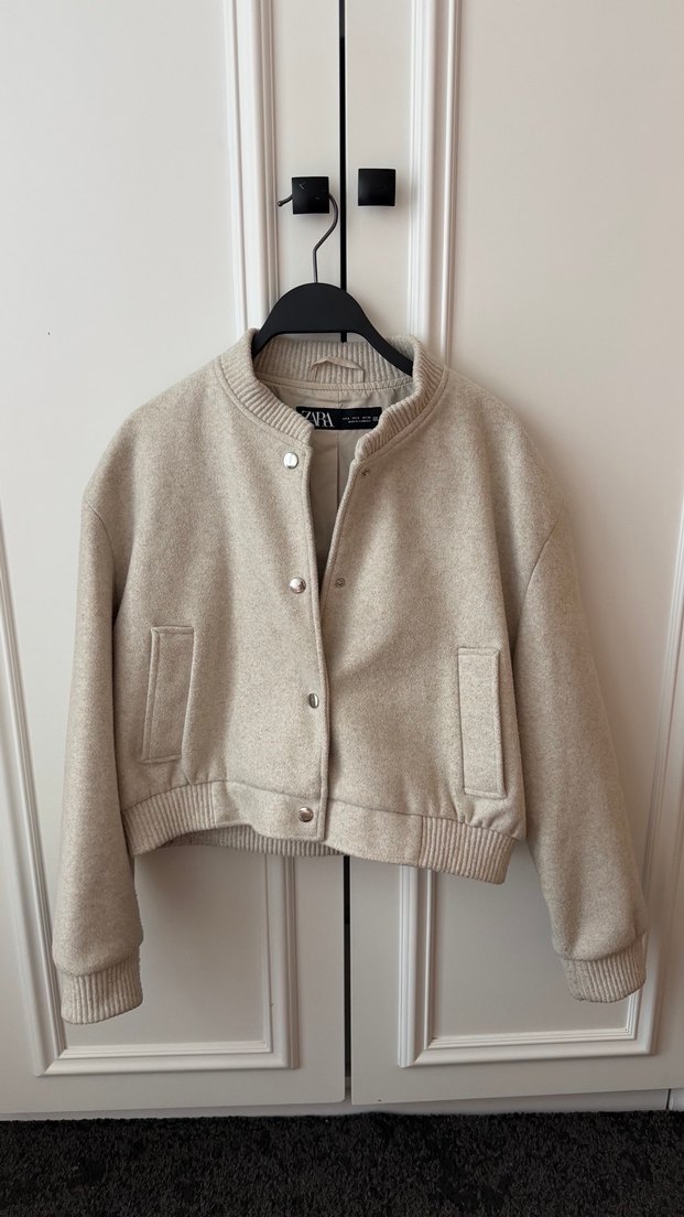 Düğmeli ön kapama ve uzun kollara sahip, rahat kesim bej kadın sweatshirt ceket. Bisiklet yaka ve yumuşak, sıcak kumaşla günlük sokak stili için uygun.