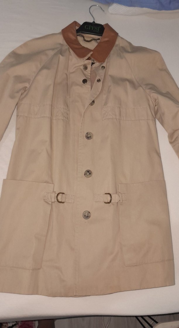 Bej midi uzunlukta, düğmeli, süet kumaştan, uzun kollu kadın trençkotu. Notlu yaka ve rahat kesimiyle günlük kullanıma uygundur.