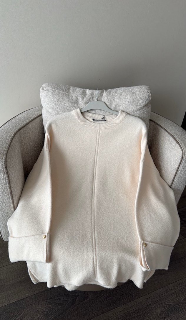 Düğmeli, yüksek yakalı, uzun kollu bej tunik . Rahat kesimiyle günlük stiline uyum sağlar.